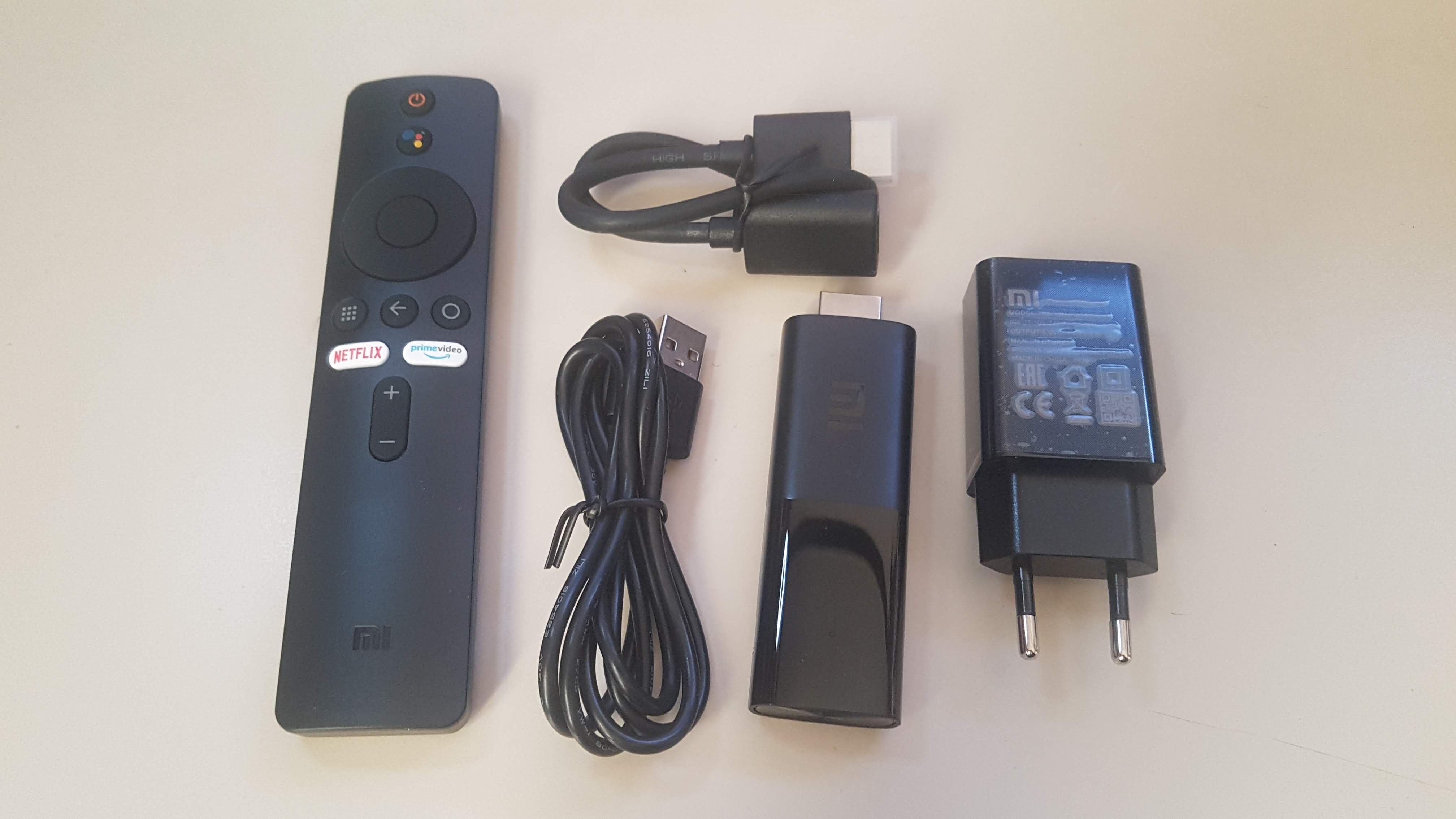 구성품은 스틱본체, 리모컨, 전원 어댑터, 5핀 케이블, HDMI연장선 이다. 구성품에 HDMI 연장선이 포함되어 있으므로 TV스틱이 길어서 구조상 스틱을 꼽기가 곤란한 모니터, TV의 경우도 문제없이 꼽을 수 있다. 이런 점은 아주 마음에 듦
