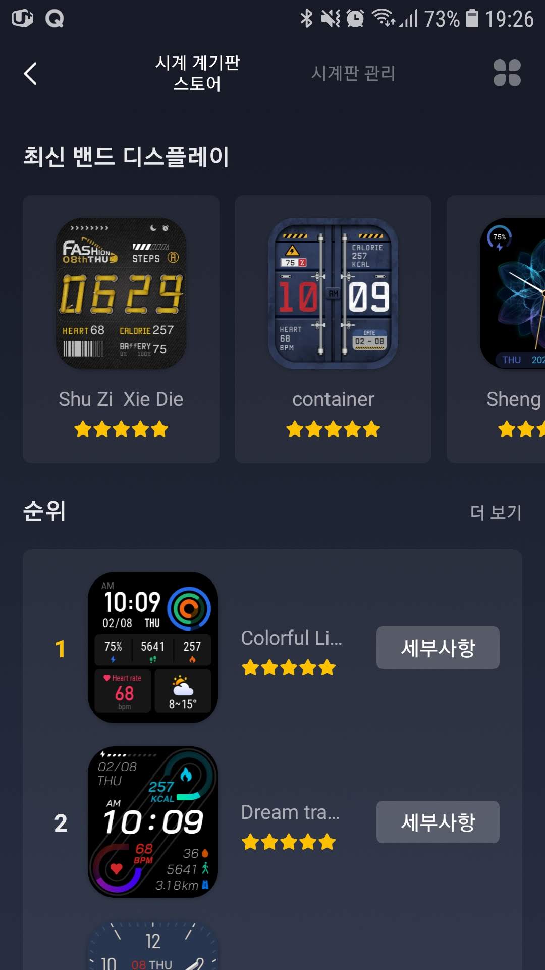 기본 워치 페이스 이외에 수 십 가지 종류가 Zepp 어플에 올라와 있어서 마음대로 바꿀 수가 있다. 그런데 그렇게 마음에 드는 페이스도 아직은 별로 없는 듯하다. 시간이 지나면 더 많아지지 않을까 생각이 된다.