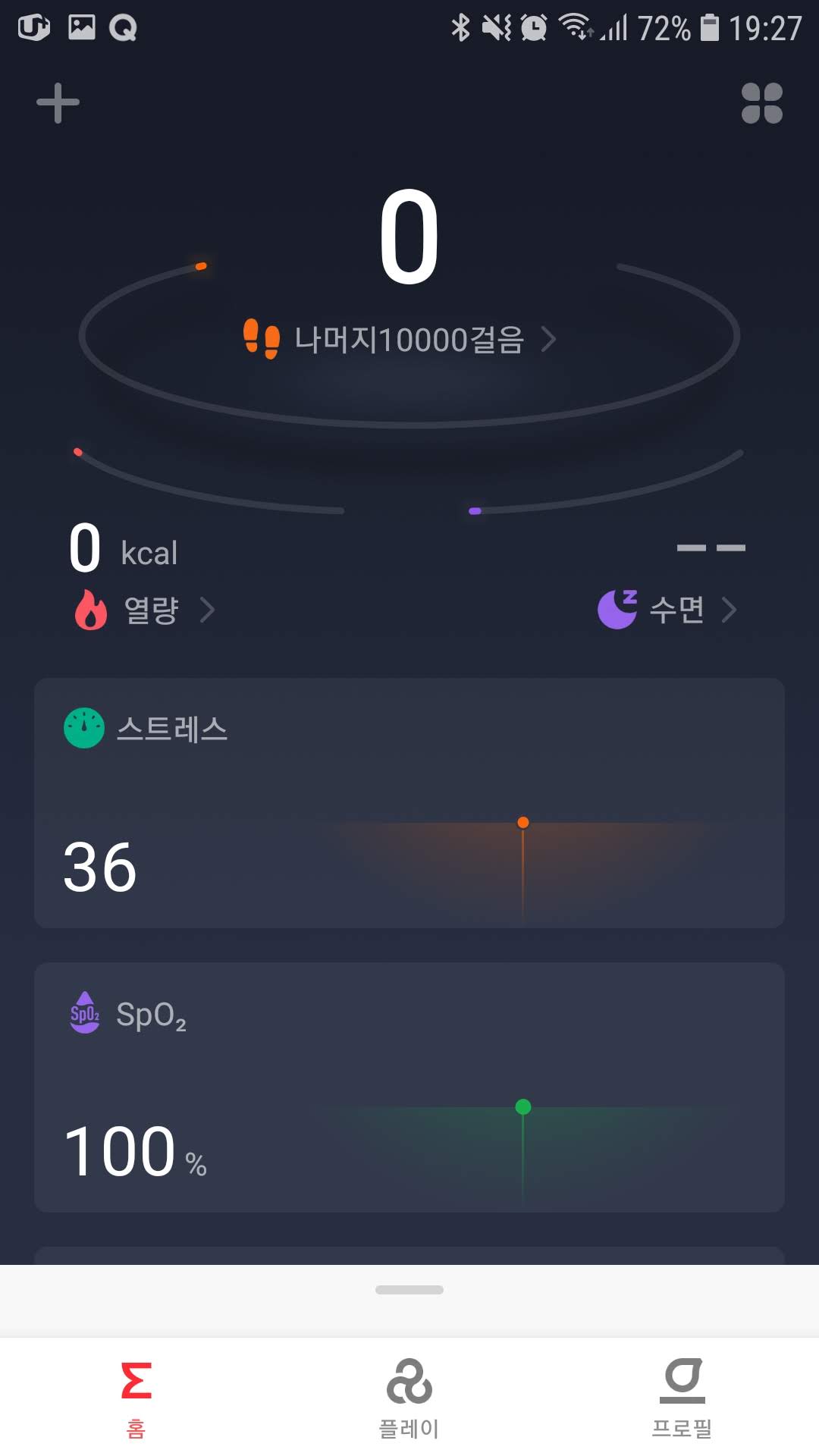 심박수를 비롯하여 산소포화도, 스트레스 지수 등을 측정해 보았다. 일단은 잘 됨. 지자기 센서도 있어서 자체적으로 나침반도 가지고 있다. 저렴하다고 빼지 않고 센서들을 골고루 잘 넣어주었다. 이외에도 생리주기 같은 여성건강관리, 70가지 이상의 스포츠 모드 (GPS도 내장되어 있어서 스마트폰의 연결 없이도 위치 기록 가능), Alexa를 이용한 음성지원이 된다 (실제로 시계 본체에 마이크 있으나 우리나라에 알렉사를 쓰는 사람이 몇 명이나 될까?) 잡다한 기능으로는 스마트폰 사진 촬영 기능, 음악 플레이어 제어 기능 등이 있다. 실제로 삼성 갤럭시 폰에서 기본 카메라 앱과 삼성 뮤직 앱이 잘 컨트롤되었다.
