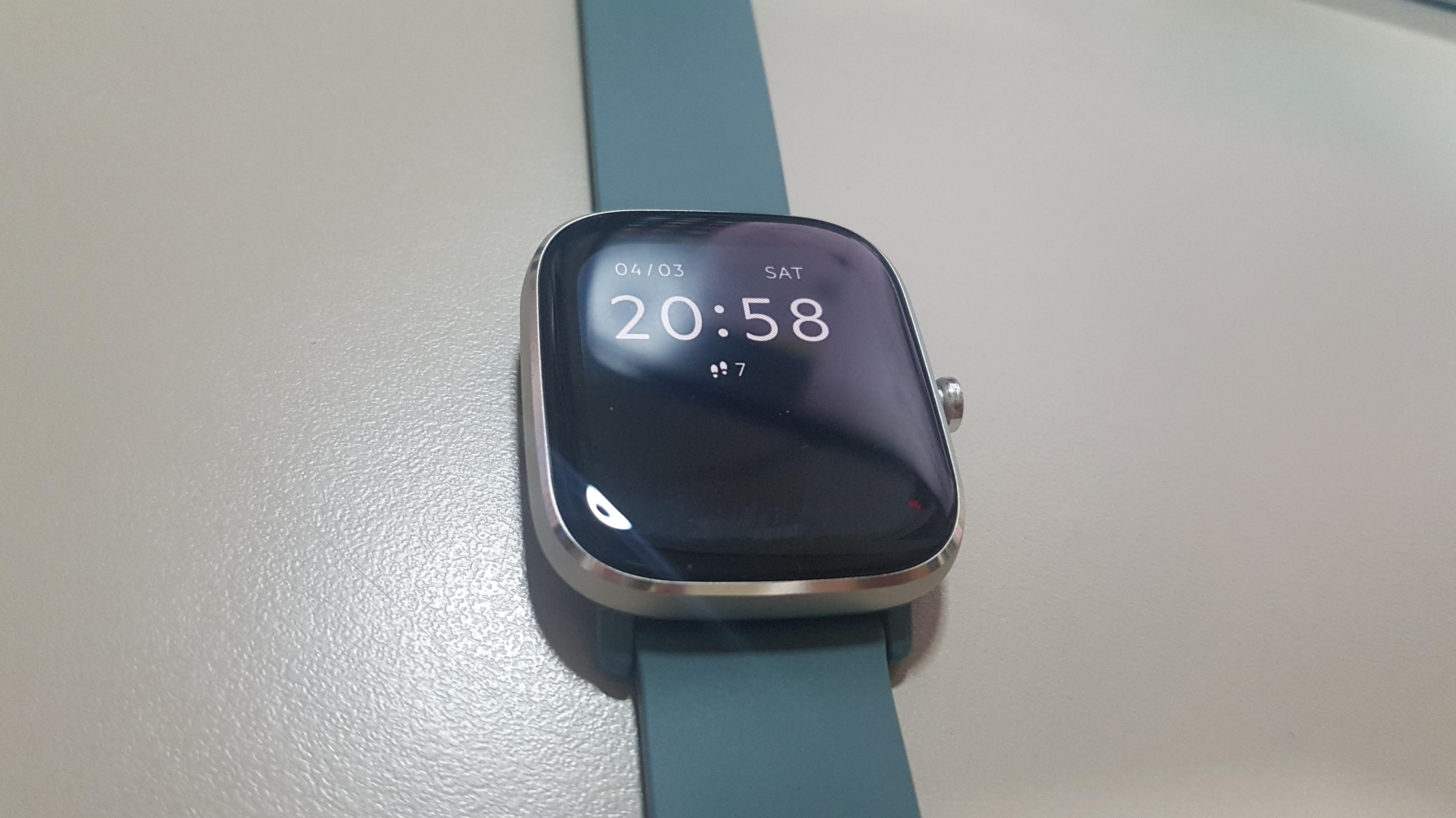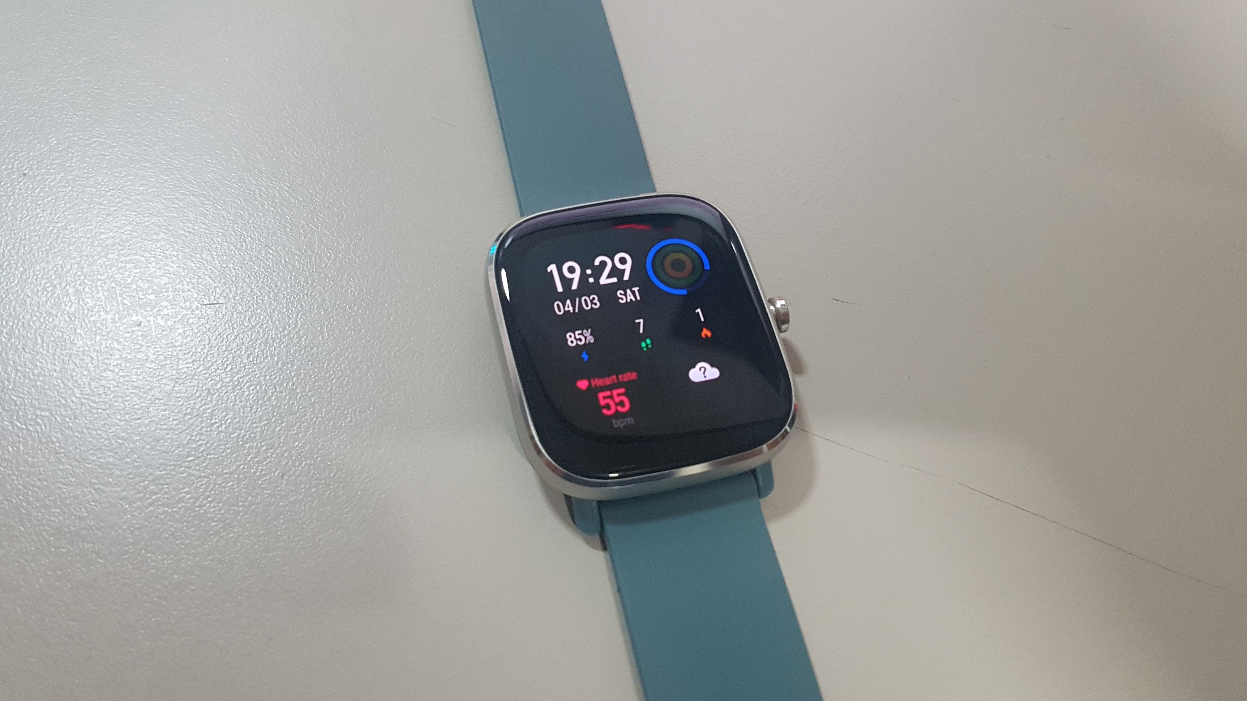Zepp 어플과 연결하여 여러가지 설정을 해 주면 워치페이스가 나타난다. 심박수 측정부터 해 보았다. 55면 너무 낮은 거 아닌가? ^^ 디스플레이는 LCD가 아니라 AMOLED 디스플레이를 사용하여 더욱 또렷한 화면을 보여준다.