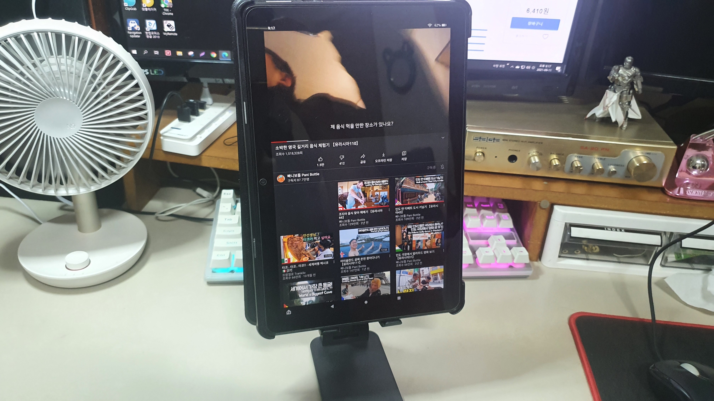 아마존 파이어 HD10 태블릿을 올려보았다. 태블릿도 안정적으로 올려 놓을 수 있다. 각종 영상 감상 시 원하는 각도로 편하게 감상이 가능하다.