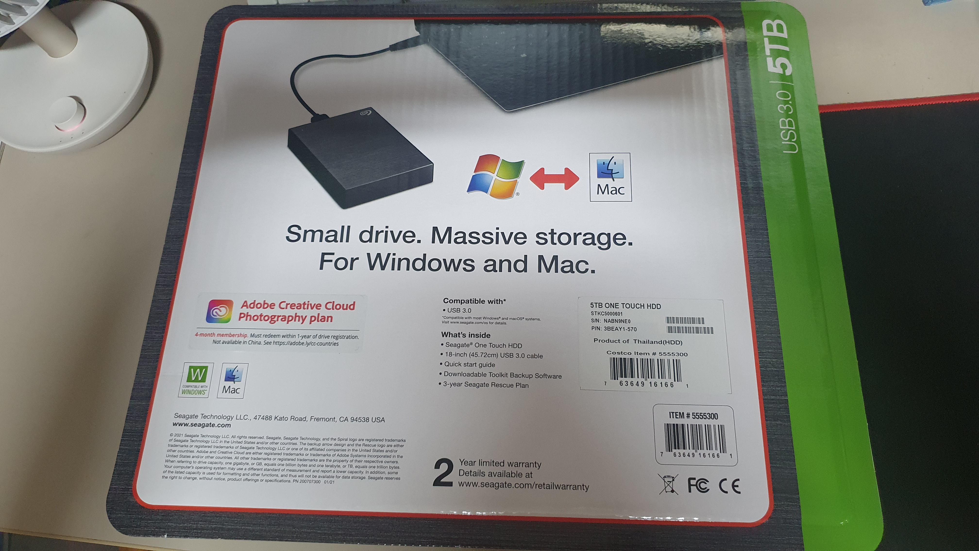 미국 직구임에도 꽤 빠르게 받아 볼 수 있었다. 외장하드의 크기 치고는 엄청나게 큰 상자에 놀랐는데 위와 같이 포장이 거대하게 되어 있었다. 아마도 도난방지를 위해서 일부러 포장의 크기를 크게 한 것 같다. 제품명은 시게이트 원터치 5TB 외장하드이다.