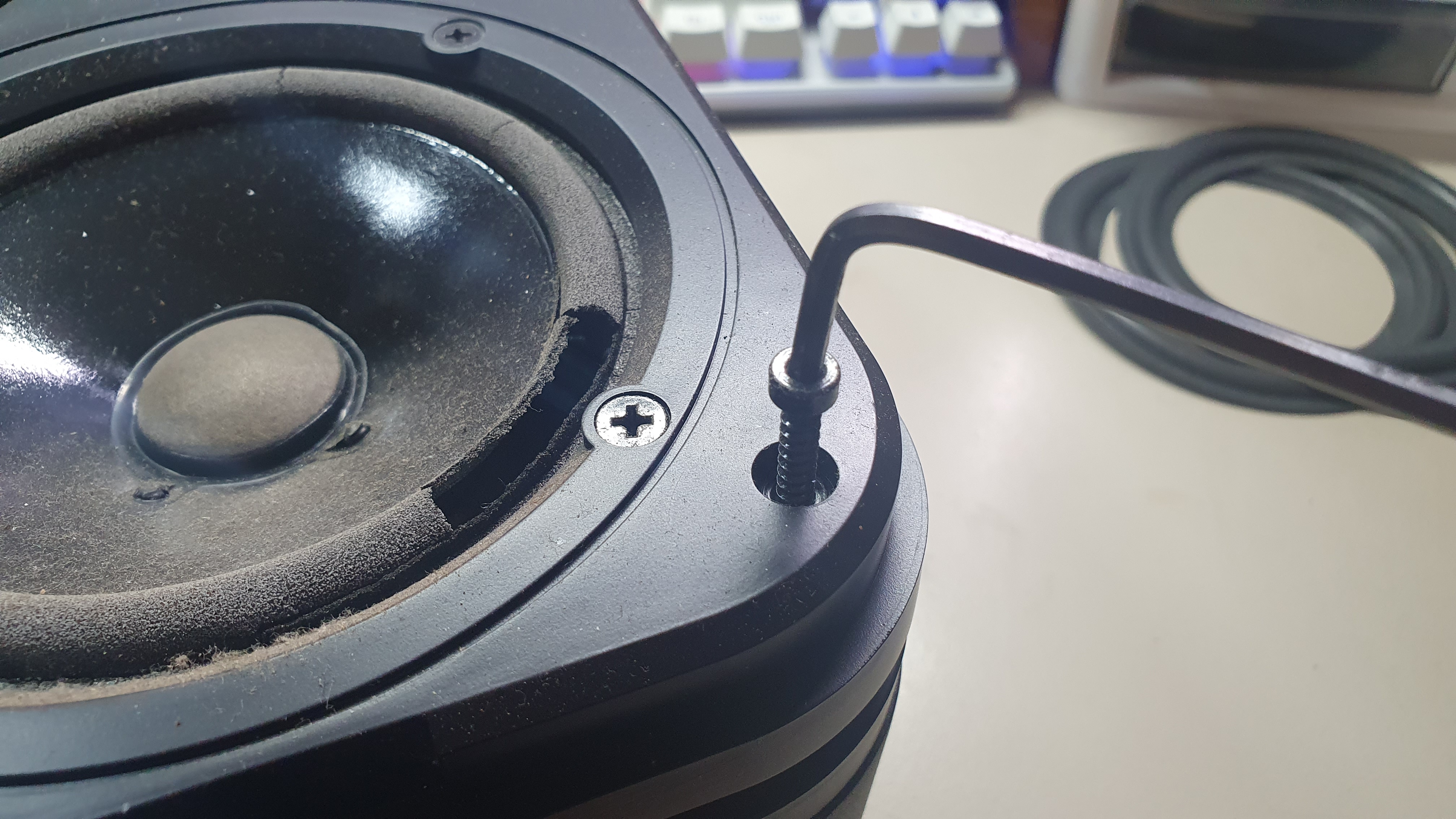 분해를 해야 한다. 육각렌치와 십자 드라이버가 필요하다. 육각렌치는 스피커 전면판을 고정하고 십자 나사는 스피커 유닛을 고정한다.