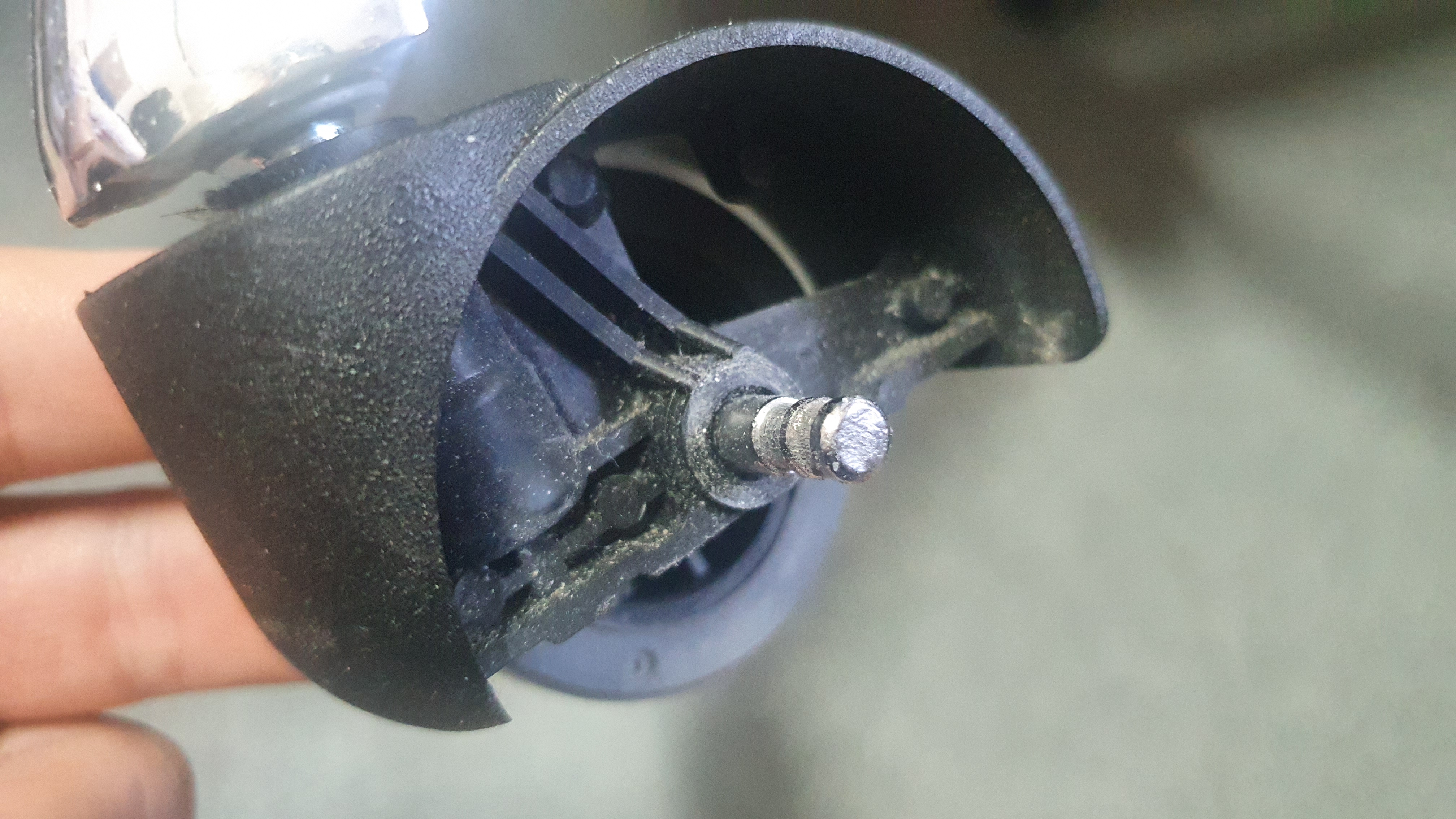 위 사진과 같이 마이너스 드라이버를 바퀴 축과 의자 발 사이의 공간에 넣고 제쳐주니 그리 어렵지 않게 축이 빠졌다. 만약에 잘 안 빠진다면 WD-40을 살짝 뿌리고 해 보는 것도 좋을 것 같다.