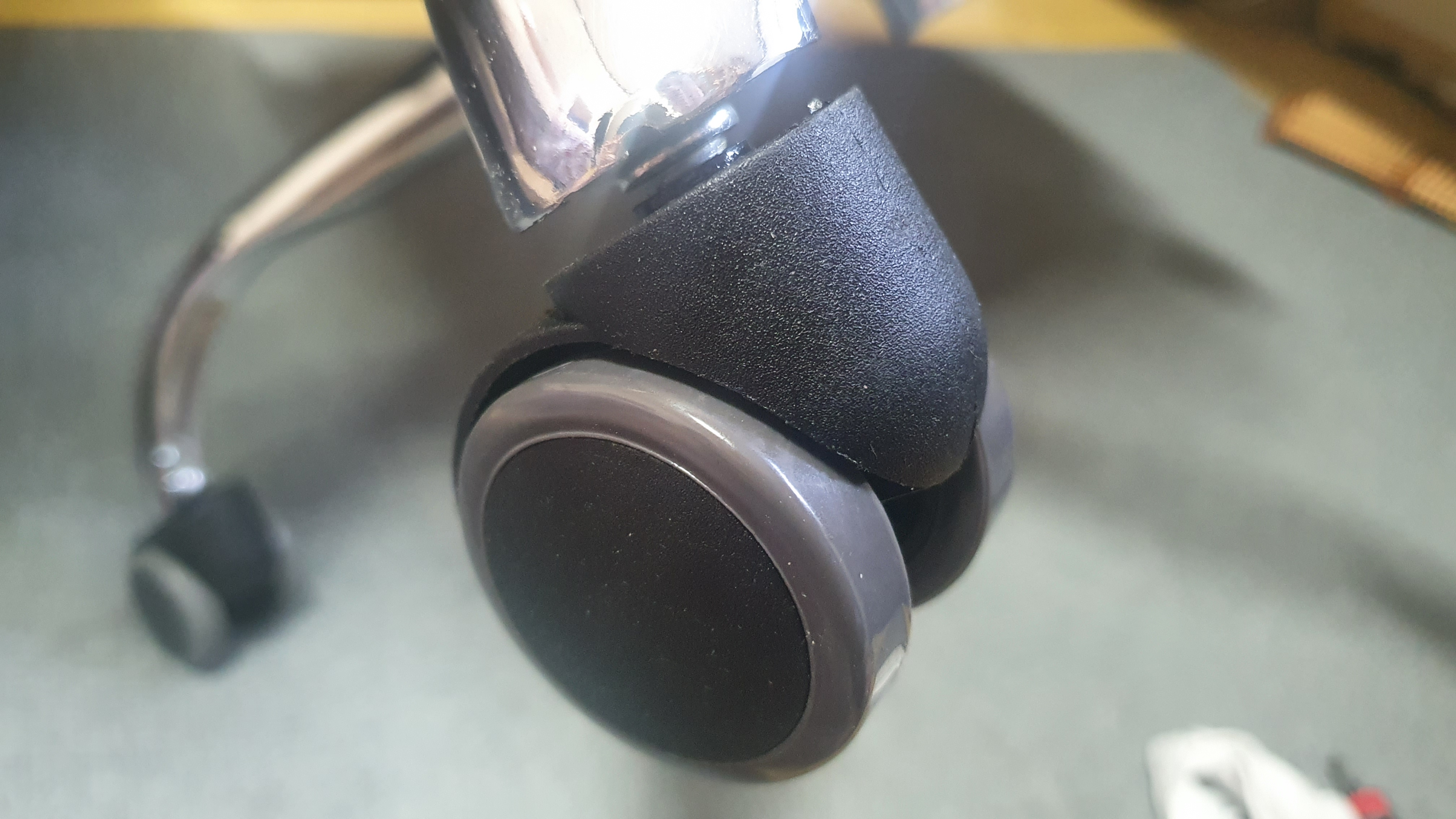 어느 날 의자에 앉아있다가 의자를 움직였는데 툭 하면서 의자가 한쪽으로 기울어졌다. 살펴보니 의자바퀴 안쪽이 부러져서 바퀴가 내려앉은 것이었다. 순간 예전에 의자를 구입할 때 여분의 바퀴를 같이 팔길래 별생각 없이 같이 구입했던 생각이 났다. 어디에 뒀는지 까맣게 잊고 있어서 찾는데 한참 걸렸다.