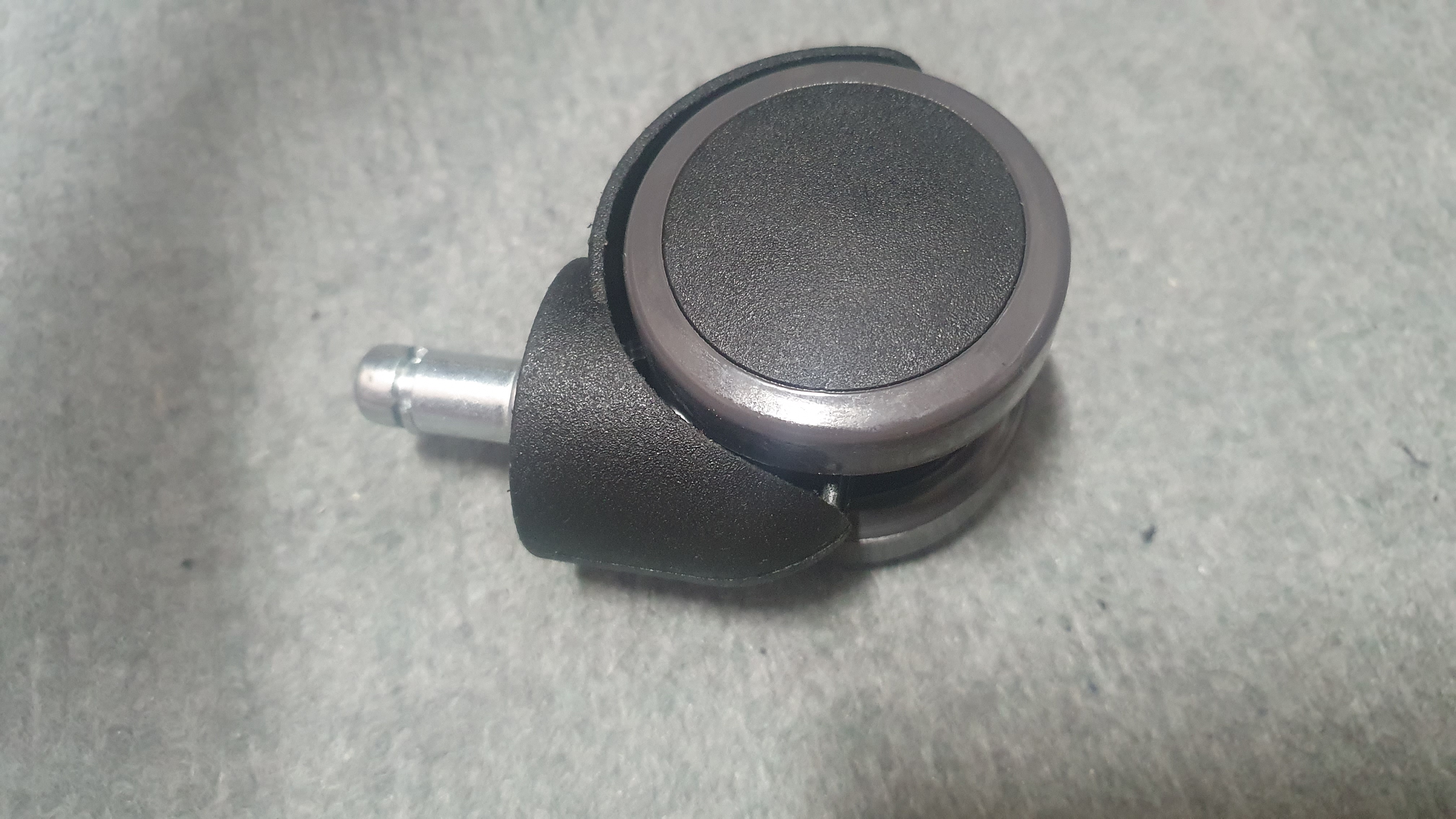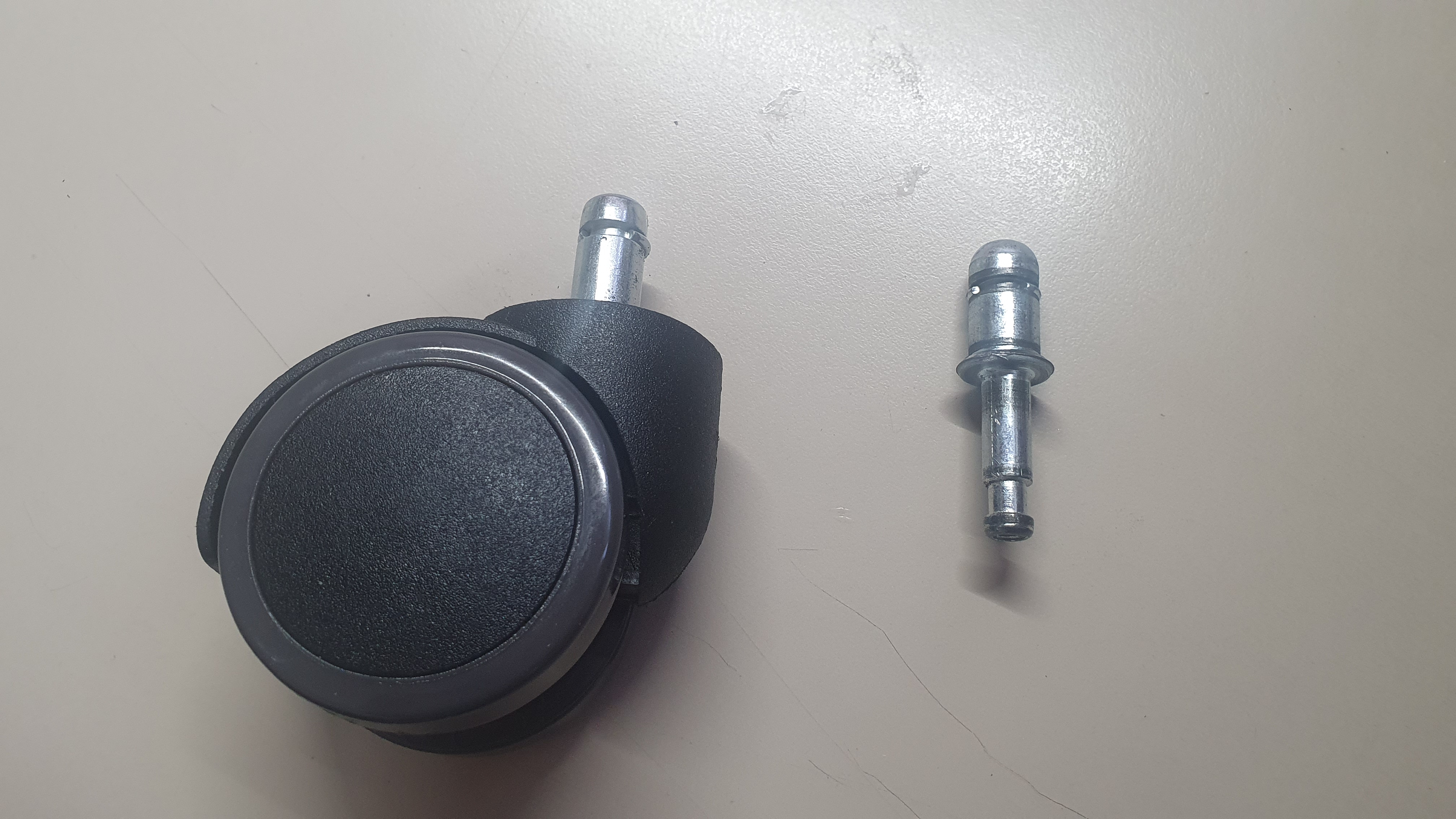 새 바퀴와 제거한 축. 둘의 직경과 모양이 같아야 한다. 대부분 의자바퀴가 저런 디자인의 바퀴를 범용적으로 사용하는 것 같다.
