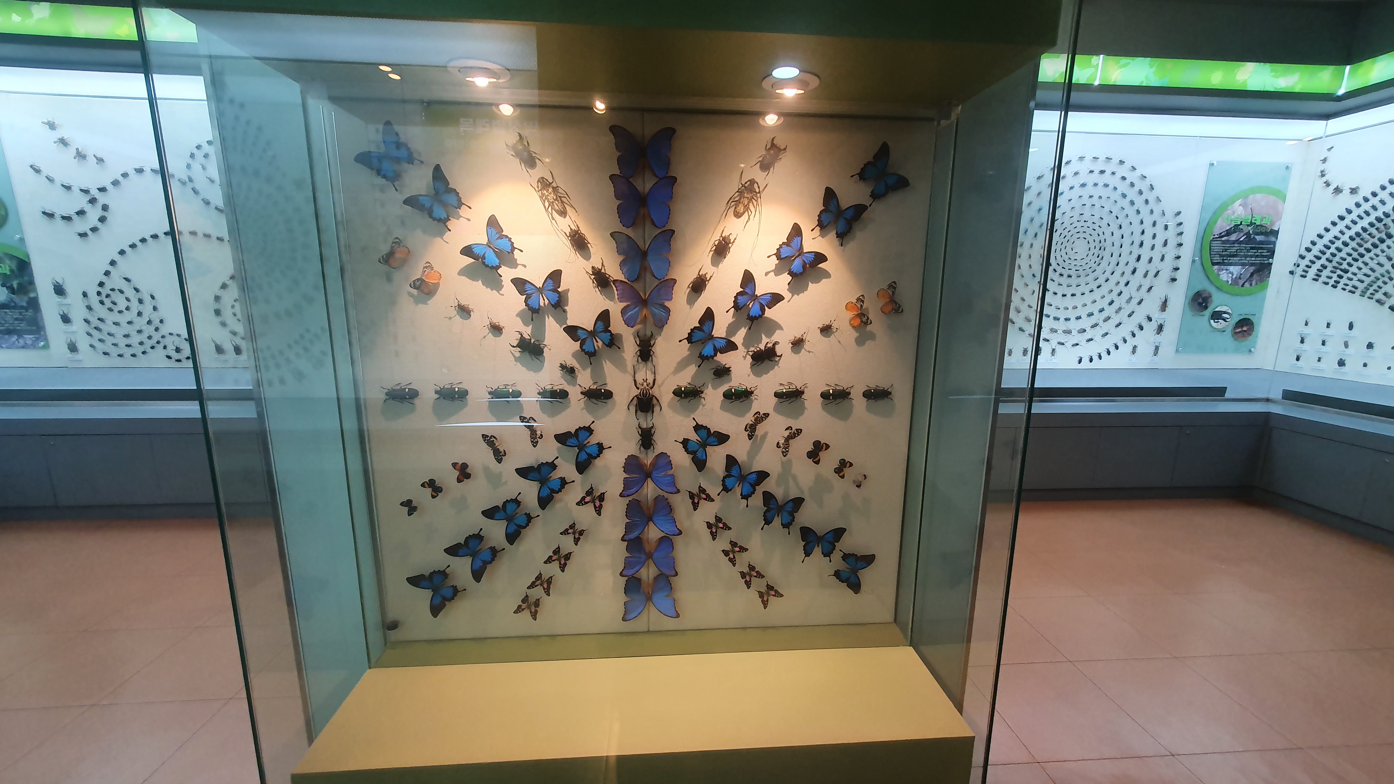 전시관에 들어가면 나비 딱정벌레류 등을 비롯하여 셀 수도 없이 많은 곤충 표본들이 전시되어 있다.