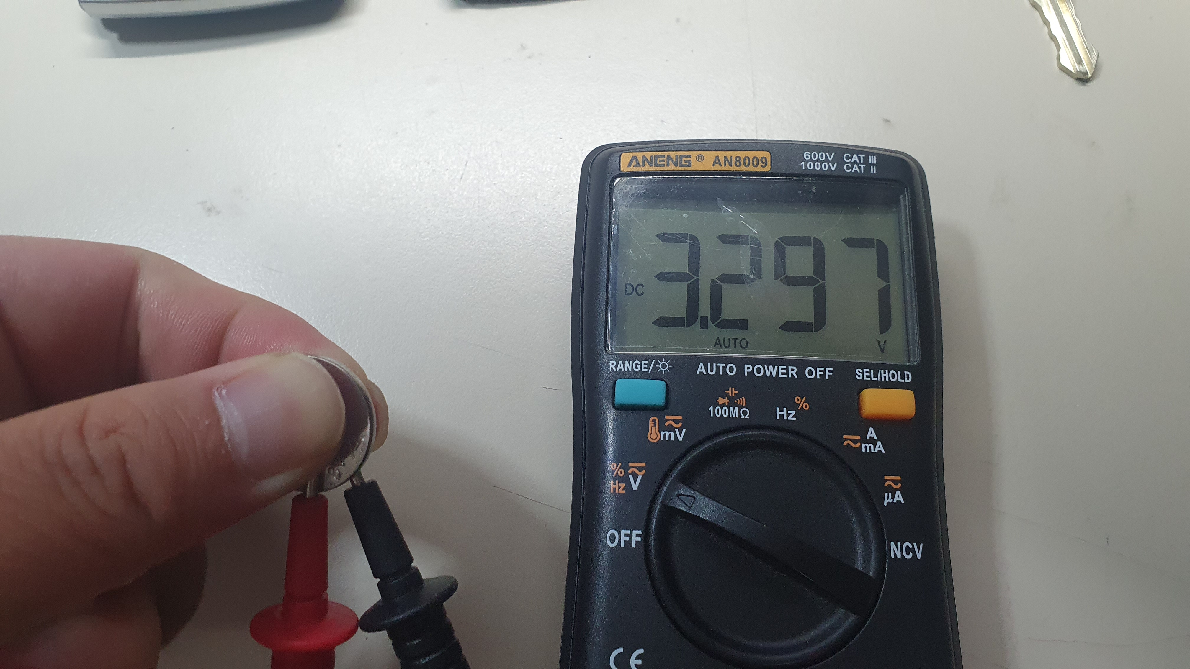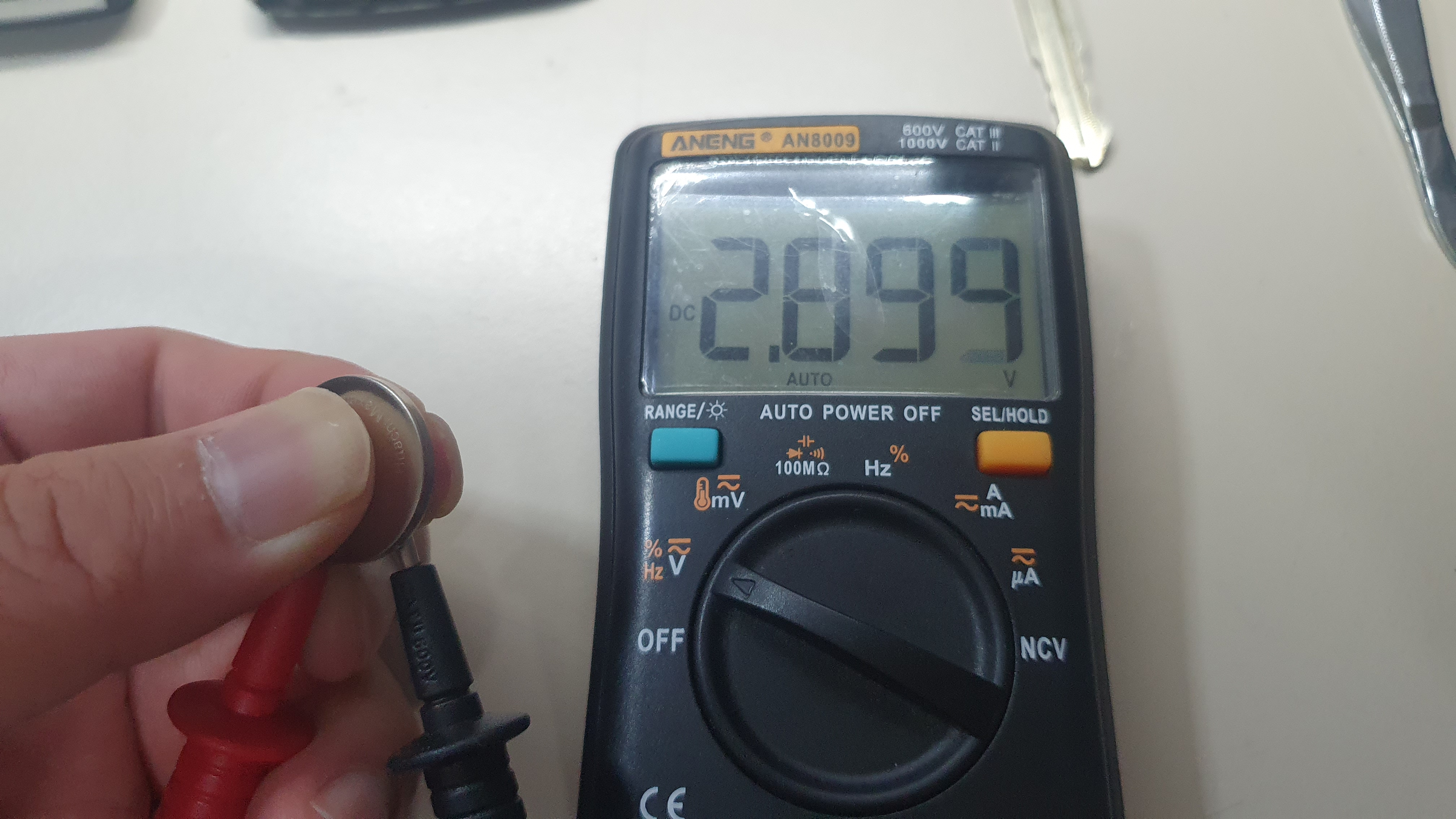 새로 교체할 배터리의 전압이다. 3.3V 정도가 나온다.
