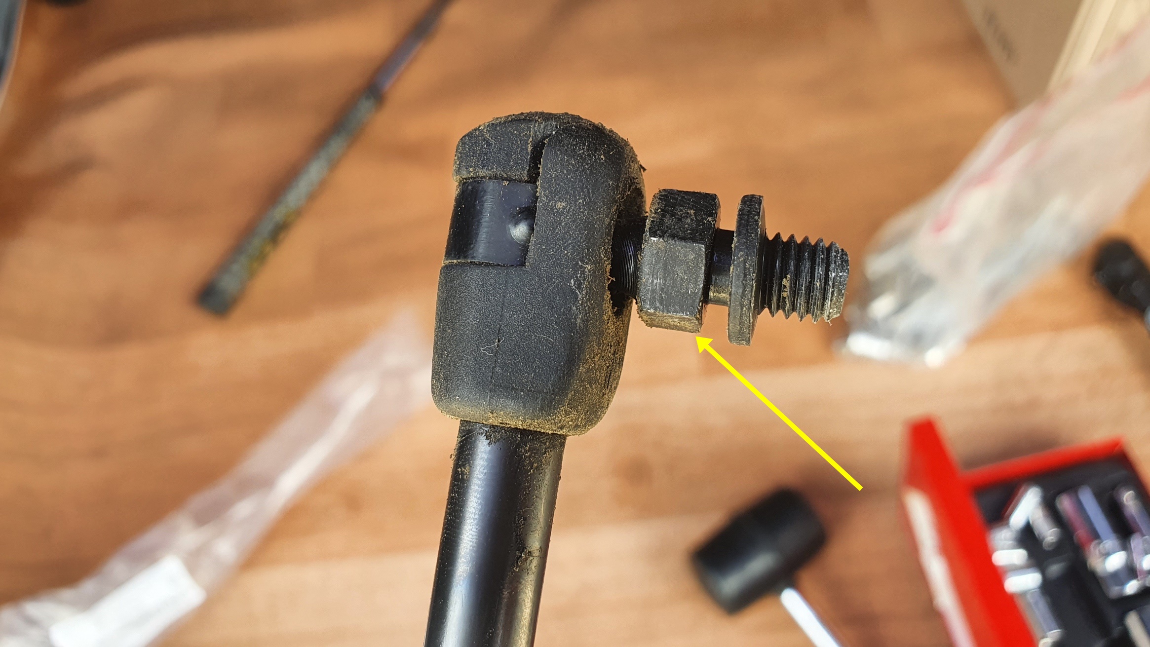 위쪽 고정 볼트인데 새 쇼바를 장착할 때 재활용해야 하므로 잃어버리면 안 된다.
