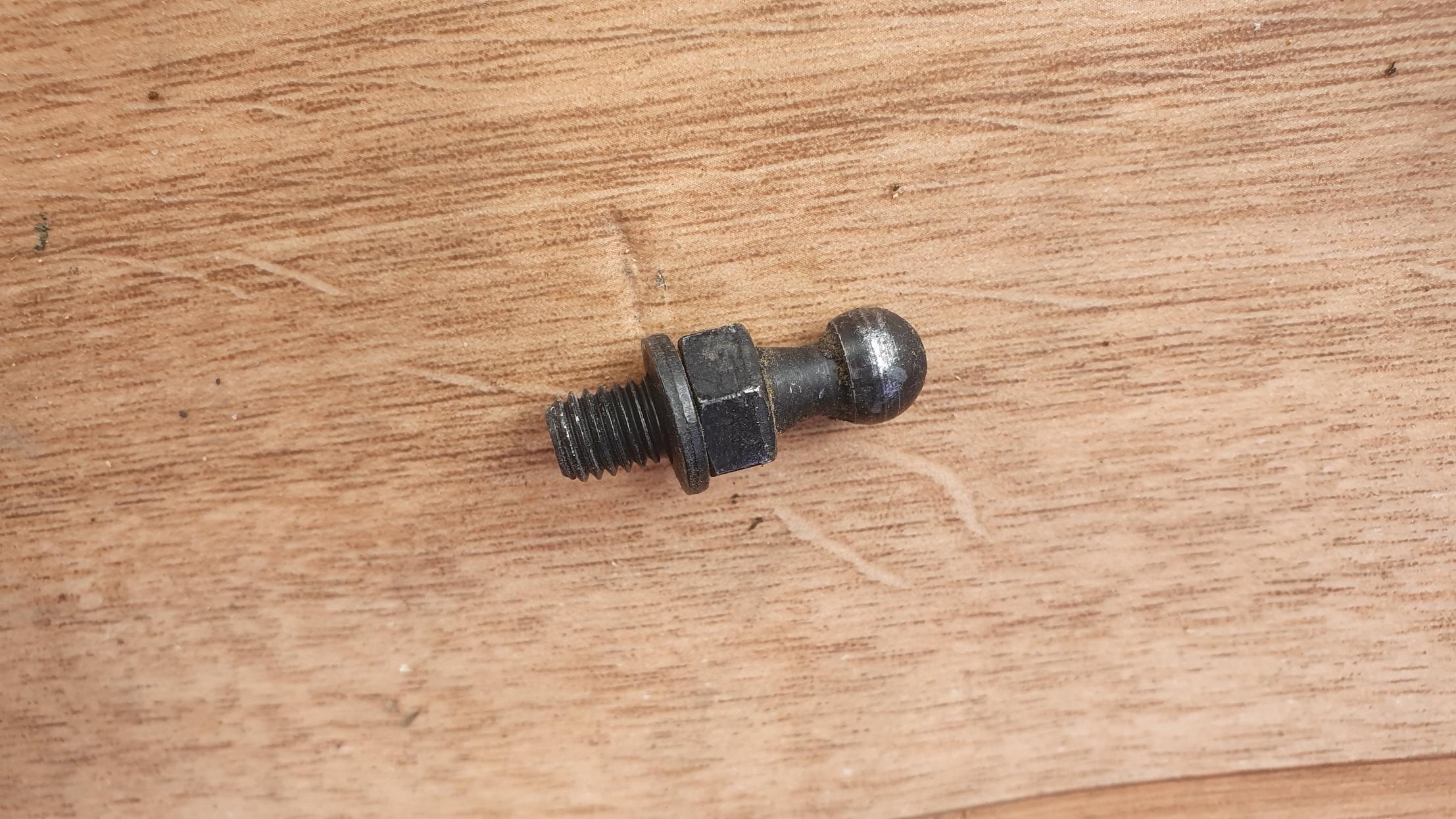 분리된 아래쪽 고정볼트. 떡진 구리스가 많이 묻어 있으므로 좀 닦아준다. 동그란 부분을 새 쇼바에 꼽아주면 된다.