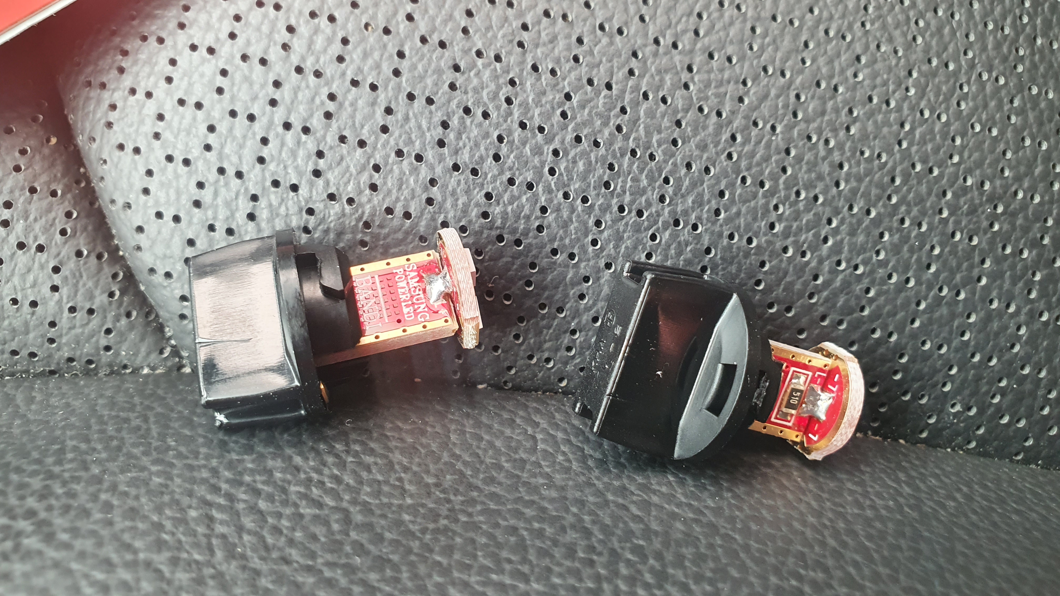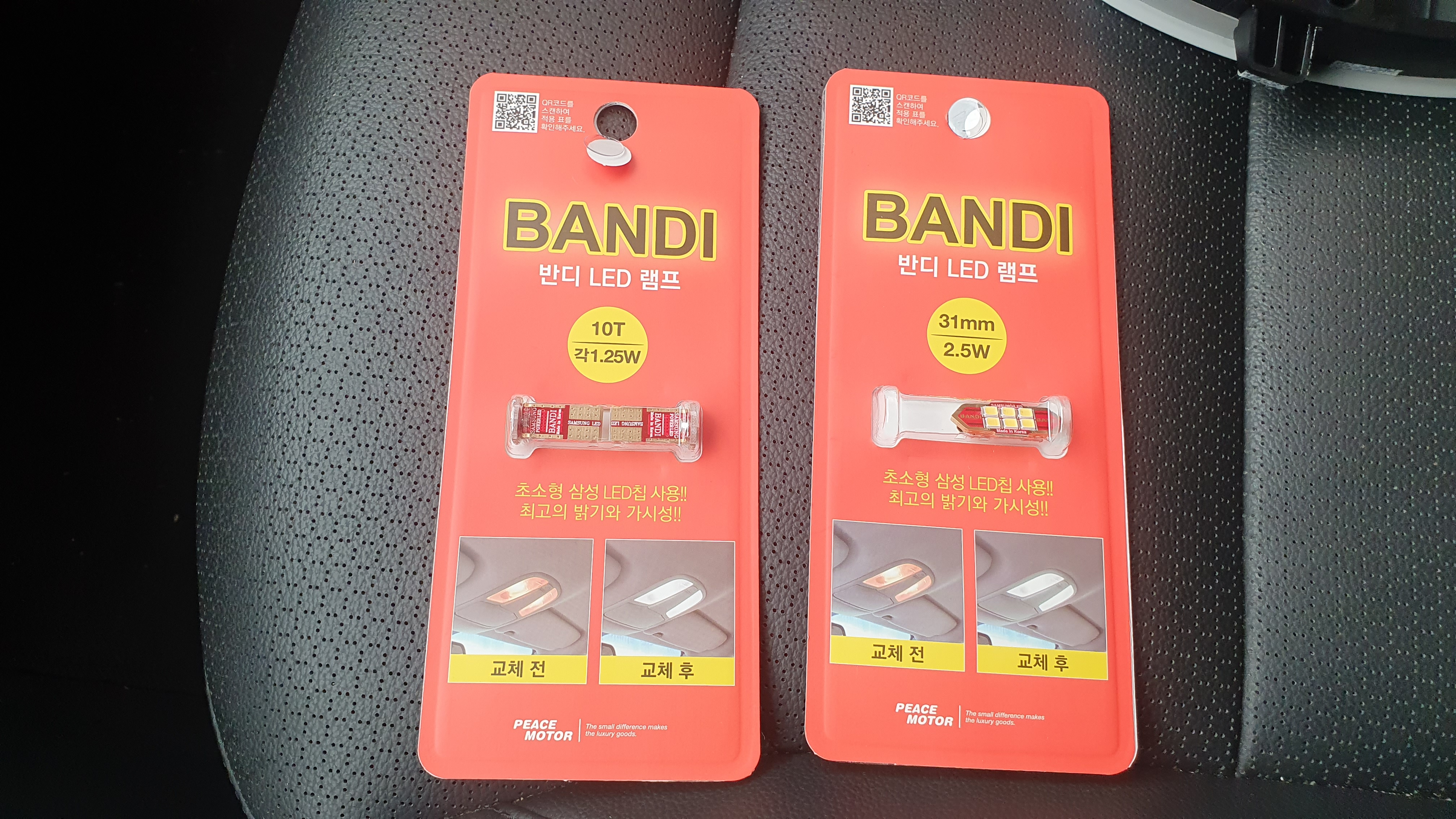 구입한 LED 왼쪽이 전방 실내등 우측이 중앙 실내등이다. 전방은 2개, 중앙은 1개가 들어있다.