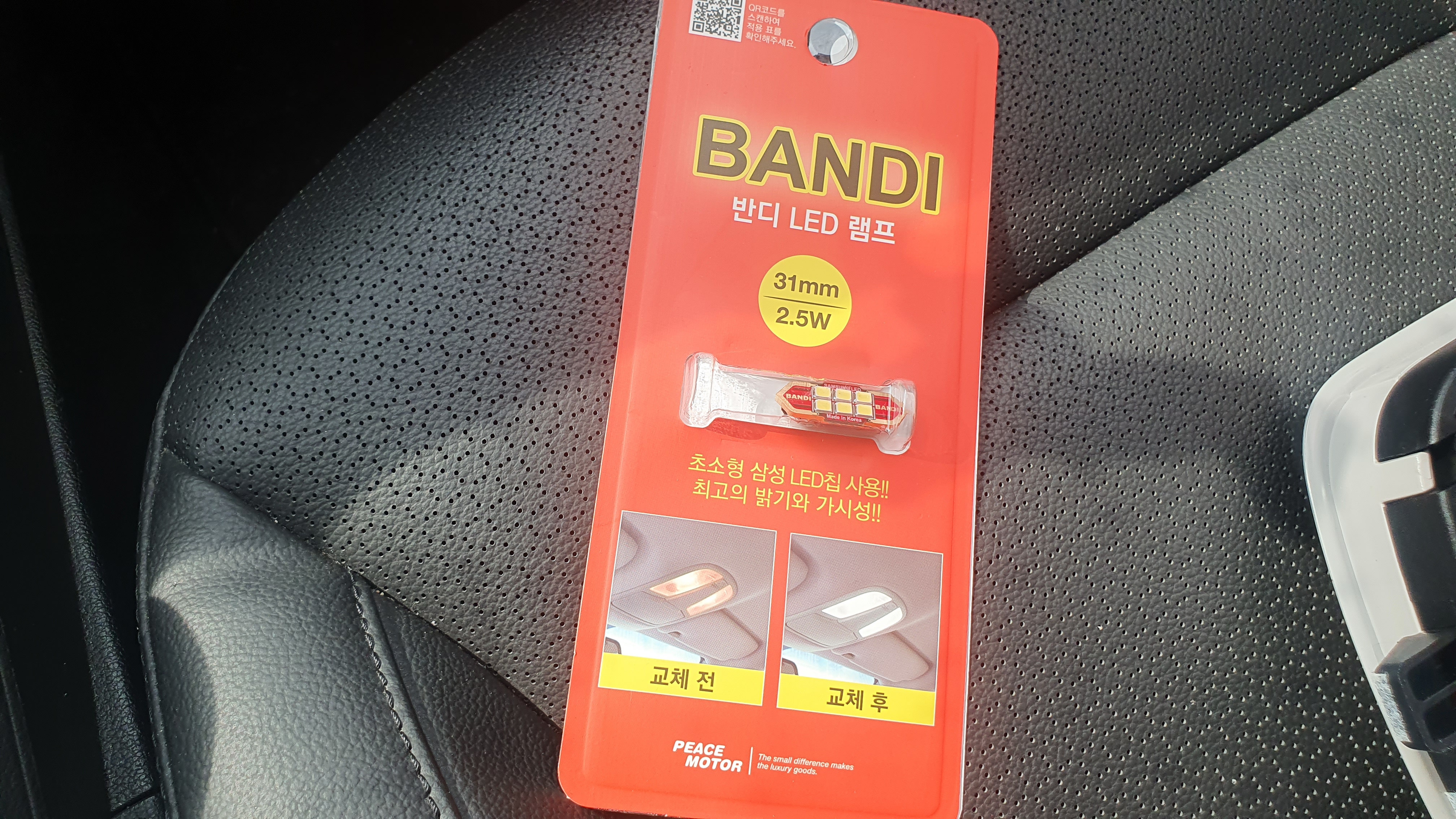 전혀 계획에 없던 DIY였는데 마트에 들렀다가 아래와 같은 것을 보게 되었다. 충동적으로 구매 후 차의 실내등을 누런색의 백열전구에서 하얀색의 LED 등으로 바꾸어 보았다.