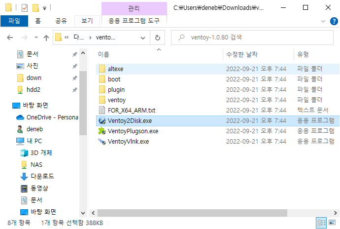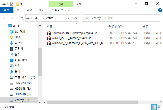 USB에 Ventoy 프로그램이 설치된다.