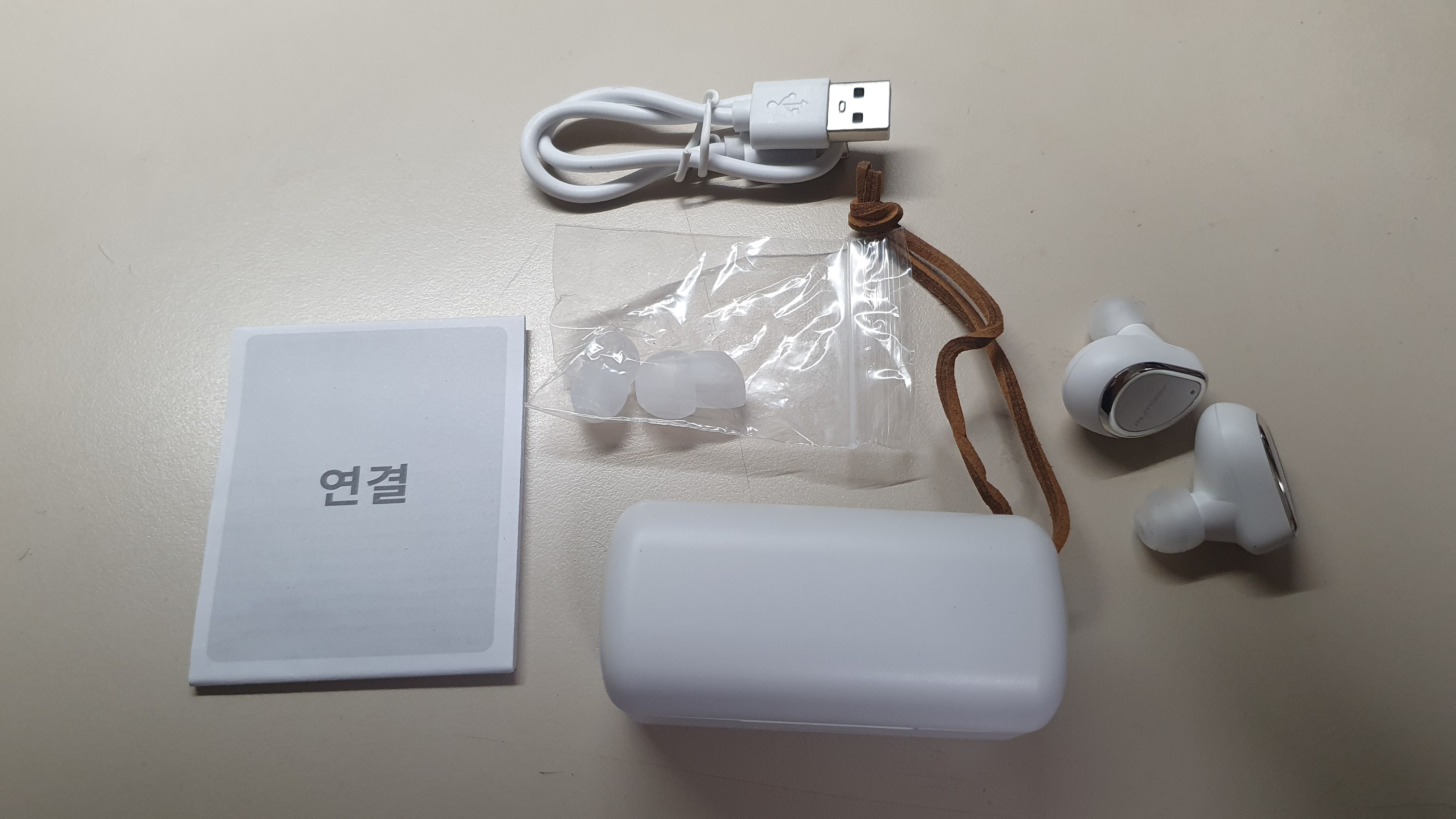 국내업체의 제품 답게 한글매뉴얼이 제공된다. 이어팁은 대중소 3가지가 있다. 조금 특이한 건 케이스에 가죽끈이 달려 있어서 가방 같은데 걸고 다닐 수도 있을 것 같은데 누가 이걸 걸고 다닐까? 암튼 그래도 분실방지의 목적에서는 없는 것보단 나을 것 같은 생각이 든다.