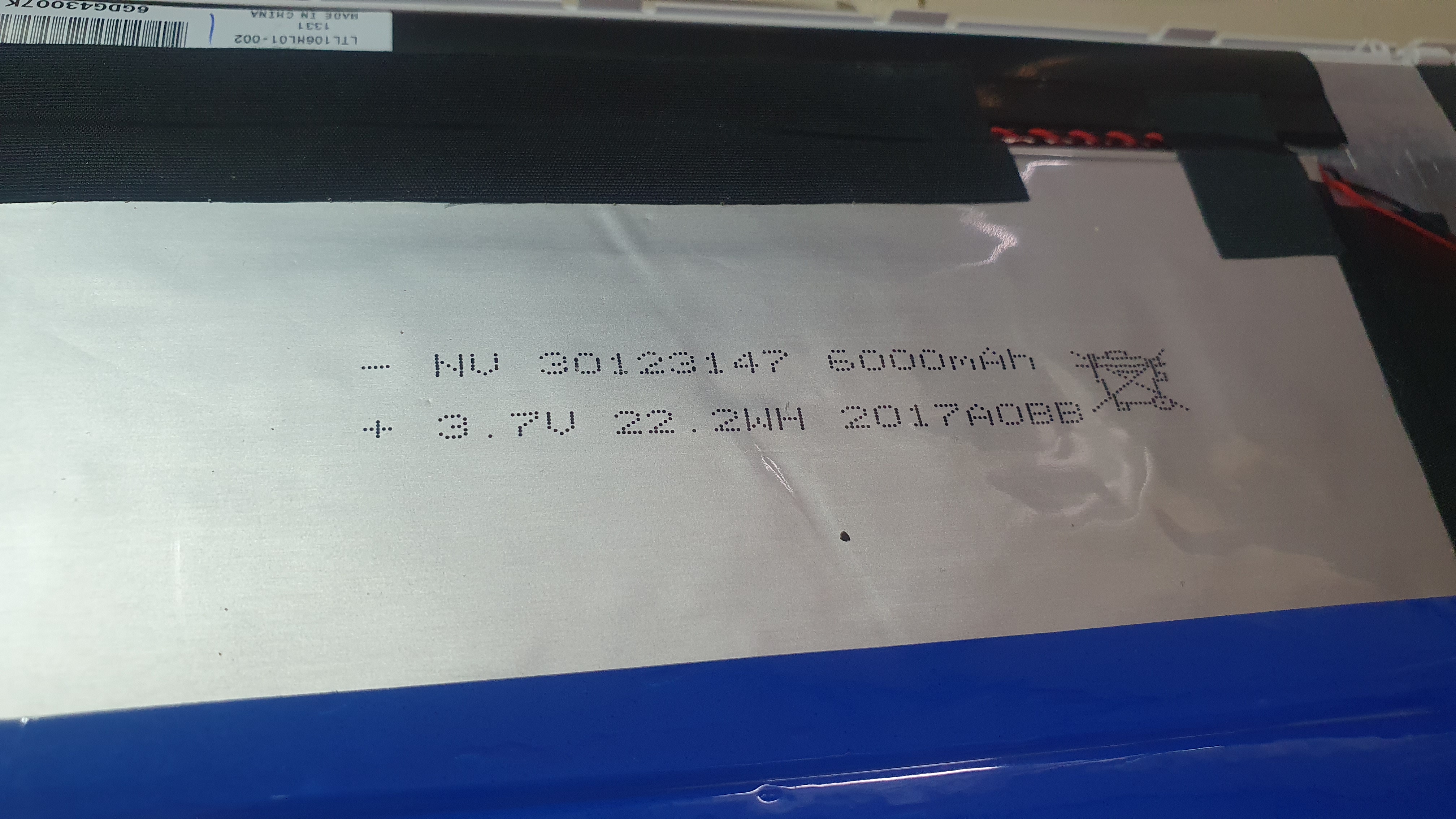 오리지널 배터리 표기 부분이다. 배터리 탈착을 위해 배터리 둘레에 붙어 있는 테이프들을 모두 제거해준다. 테이프에 전선과 각종 부품들도 고정이 되어 있으므로 조심히 천천히 제거해 준다.
