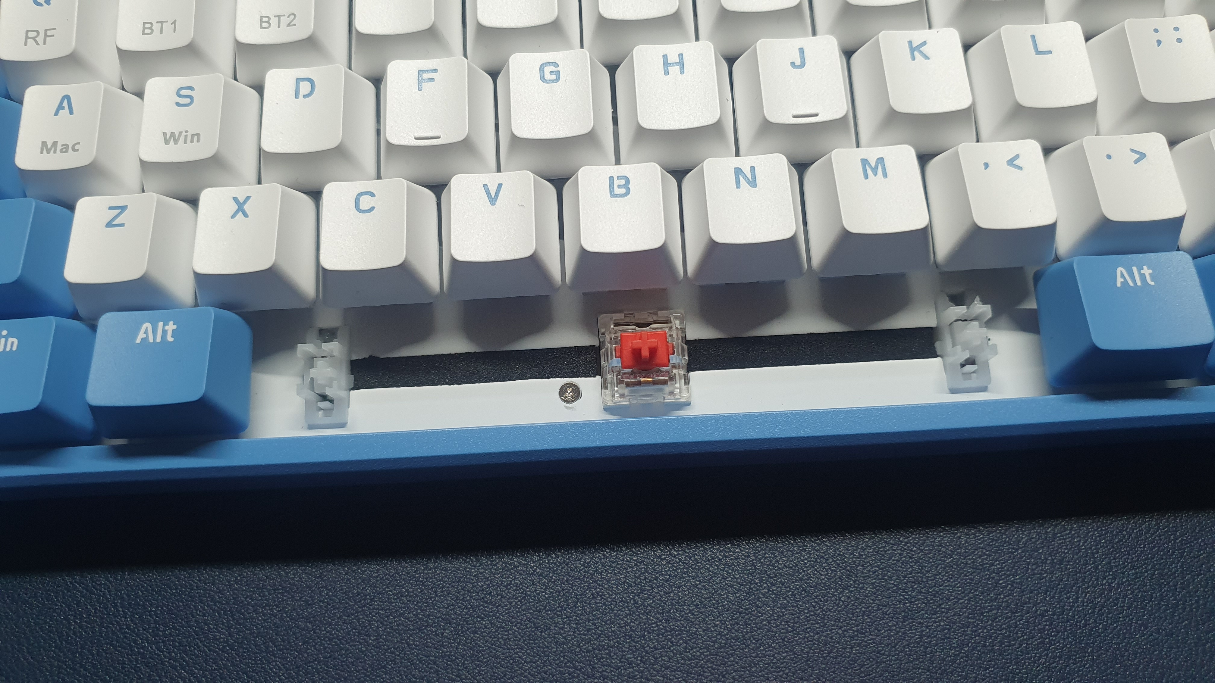 스페이스바도 뽑아보았다. 역시 좌우로 보조 스태빌라이저? 가 달려 있다. 기다란 키캡에는 모두 이런 식으로 키캡을 고정하는 것 같다.