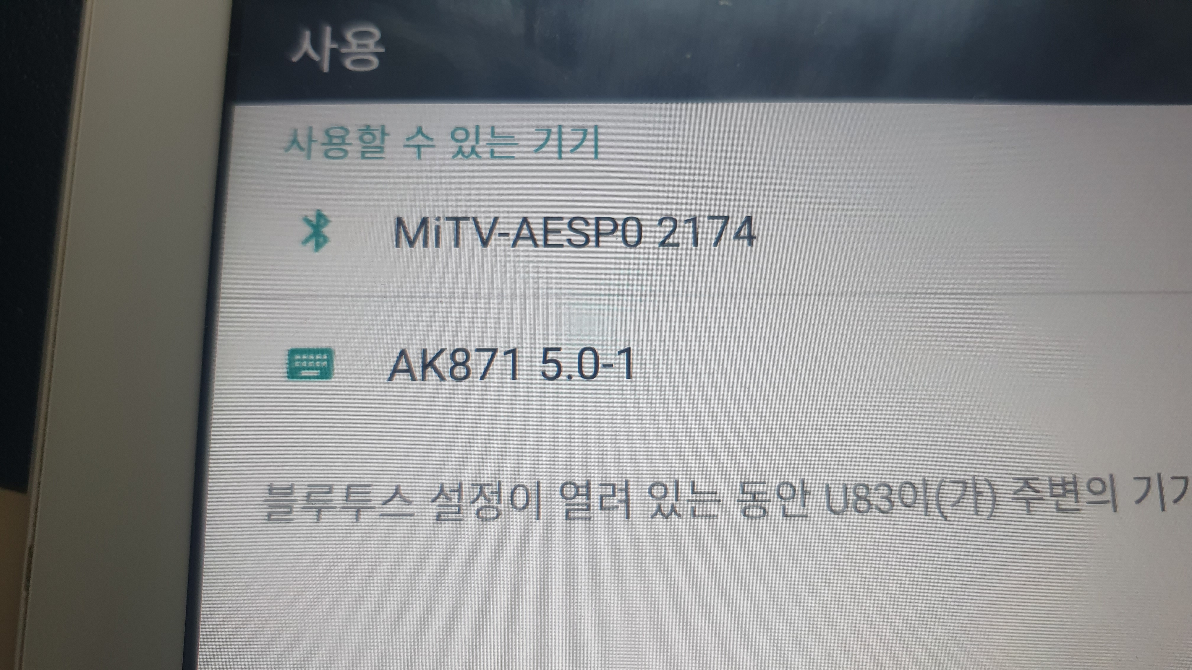 블루투스로 안드로이드 태블릿에 연결해 보았다. 'AK871 5.1-1' 이라고 표시되고 바로 연결이 되었다.