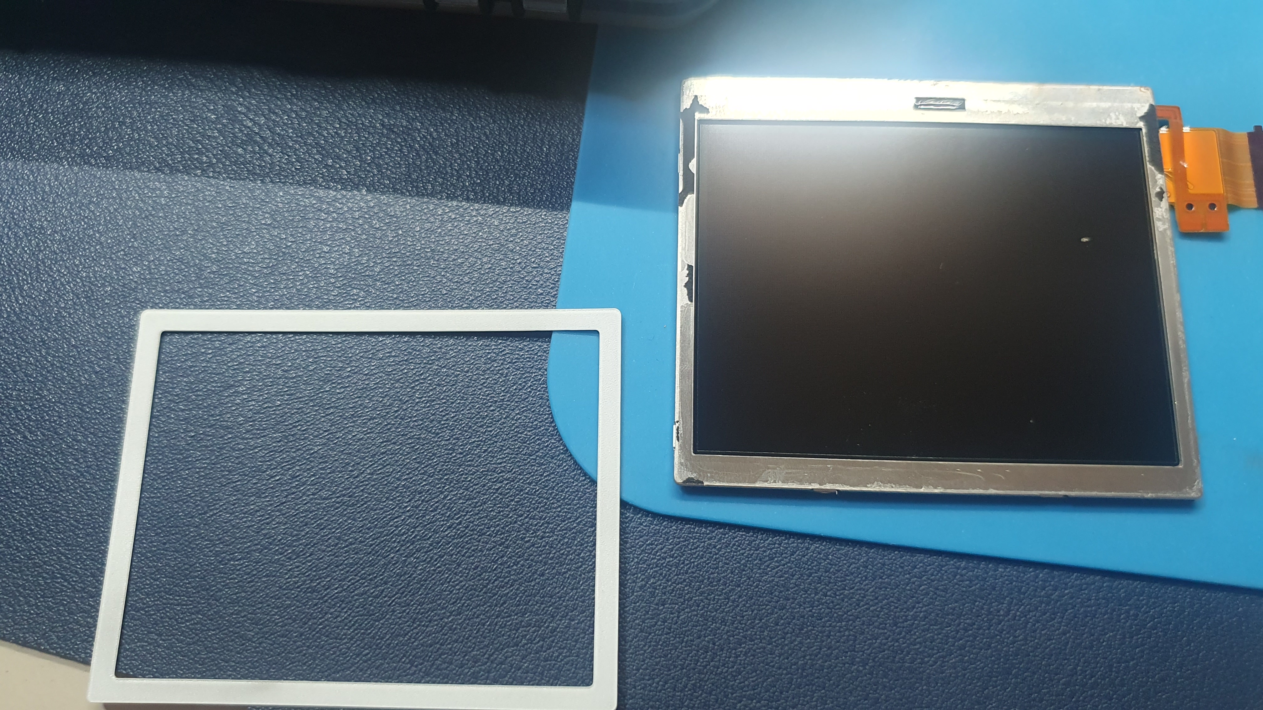 완전히 분리된 액정의 모습 맨 앞에 붙어 있는 터치스크린을 떼어내야 한다.
