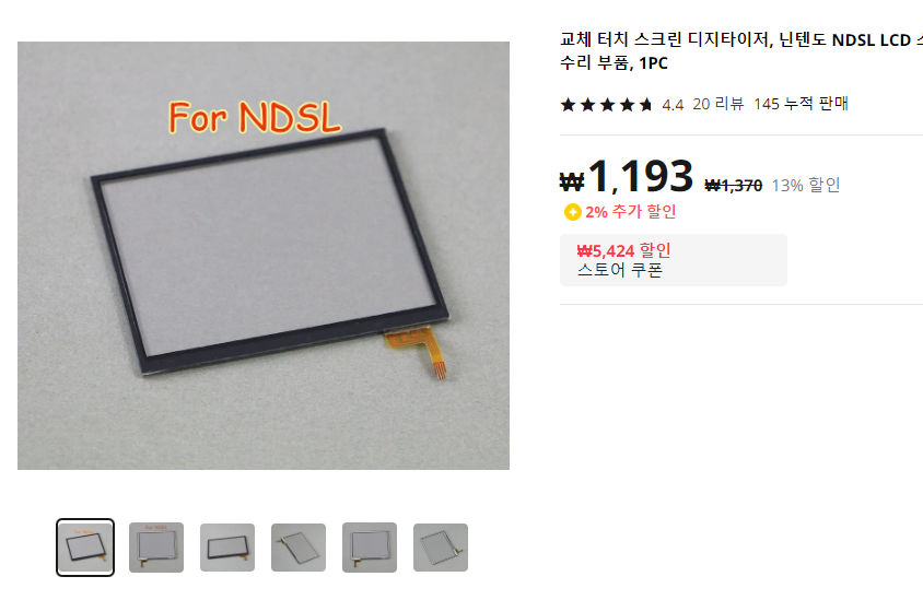 요즘 레트로 게임에 관심이 생기면서 예전부터 가지고 있던 고장 난 게임기인 NDSL(닌텐도 DS Lite)을 고쳐보고 싶은 생각이 들었다. 2000년대 중반~말 정도에 유행을 했으니 벌써 15년 정도 지난 기종이다. 스마트폰도 없었던 그 시절 아이들은 물론이고 어른들도 많이 하던 게임기이다. 당시 지하철을 타면 이 게임기를 하는 모습을 심심찮게 볼 수 있었다. 특히 여성층에서 많은 인기를 끌었던 기억이 있다. (남자들은 소니 PSP를 더 많이 한 듯?) 하지만 내가 가지고 있던 NDSL은 터치스크린(디지타이저)이 고장이 나고 스크래치가 나면서 자연스럽게 잊히고 서랍 속으로 들어가게 되었다. 이를 다시 살려보려고 알리에서 터치스크린 부품을 구입하게 되었다.