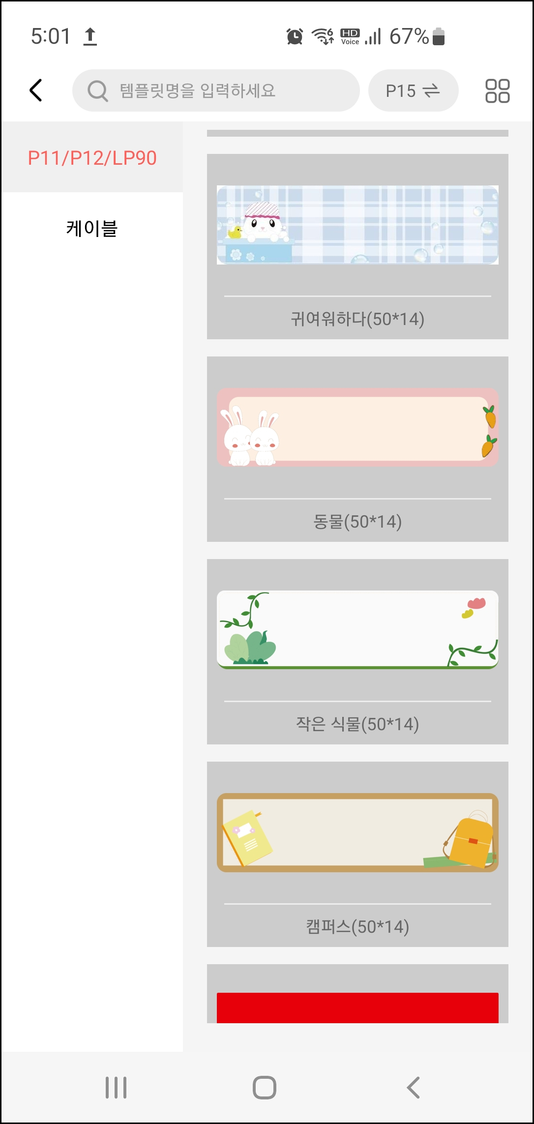 앱을 실행하고 라벨프린터를 켜고 연결버튼을 눌러서 연결한다. 블루투스로 연결된다. '라벨을 제작해 주세요' 버튼을 클릭한다.