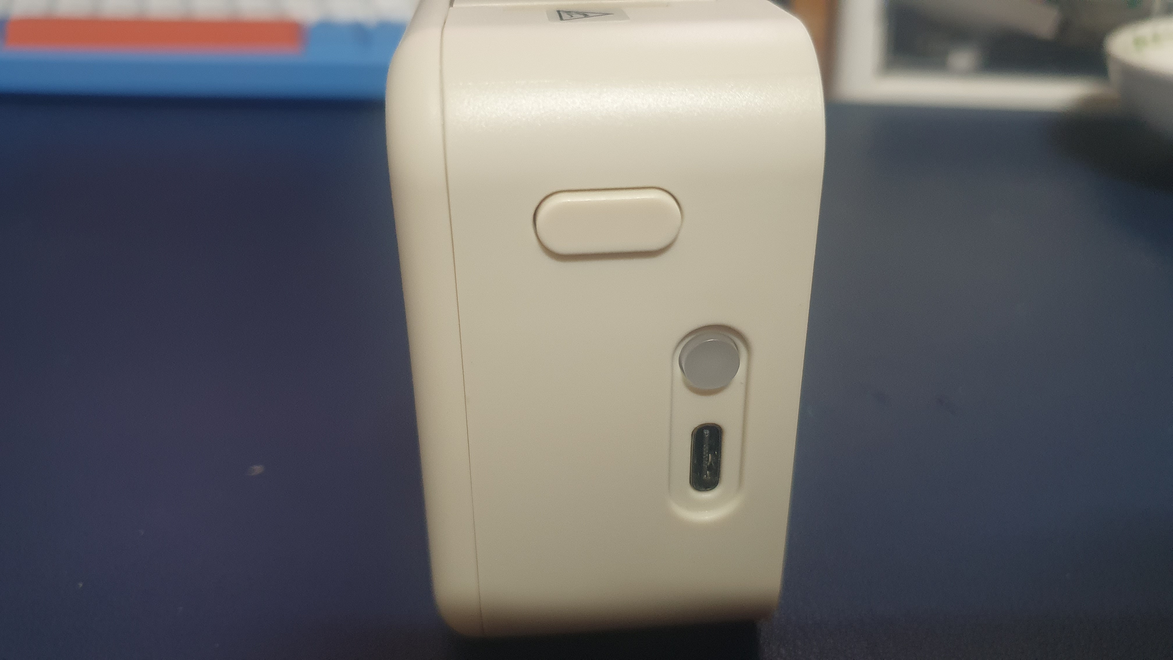 맨 위의 버튼은 스티커를 넣을 수 있도록 커버를 여는 버튼이고 그 아래 전원버튼 그리고 C타입 충전단자가 있다. 1200mAh 배터리를 내장하고 있는데 자주 사용하지 않을 경우 배터리 용량은 크게 상관이 없지 않을까 싶다.