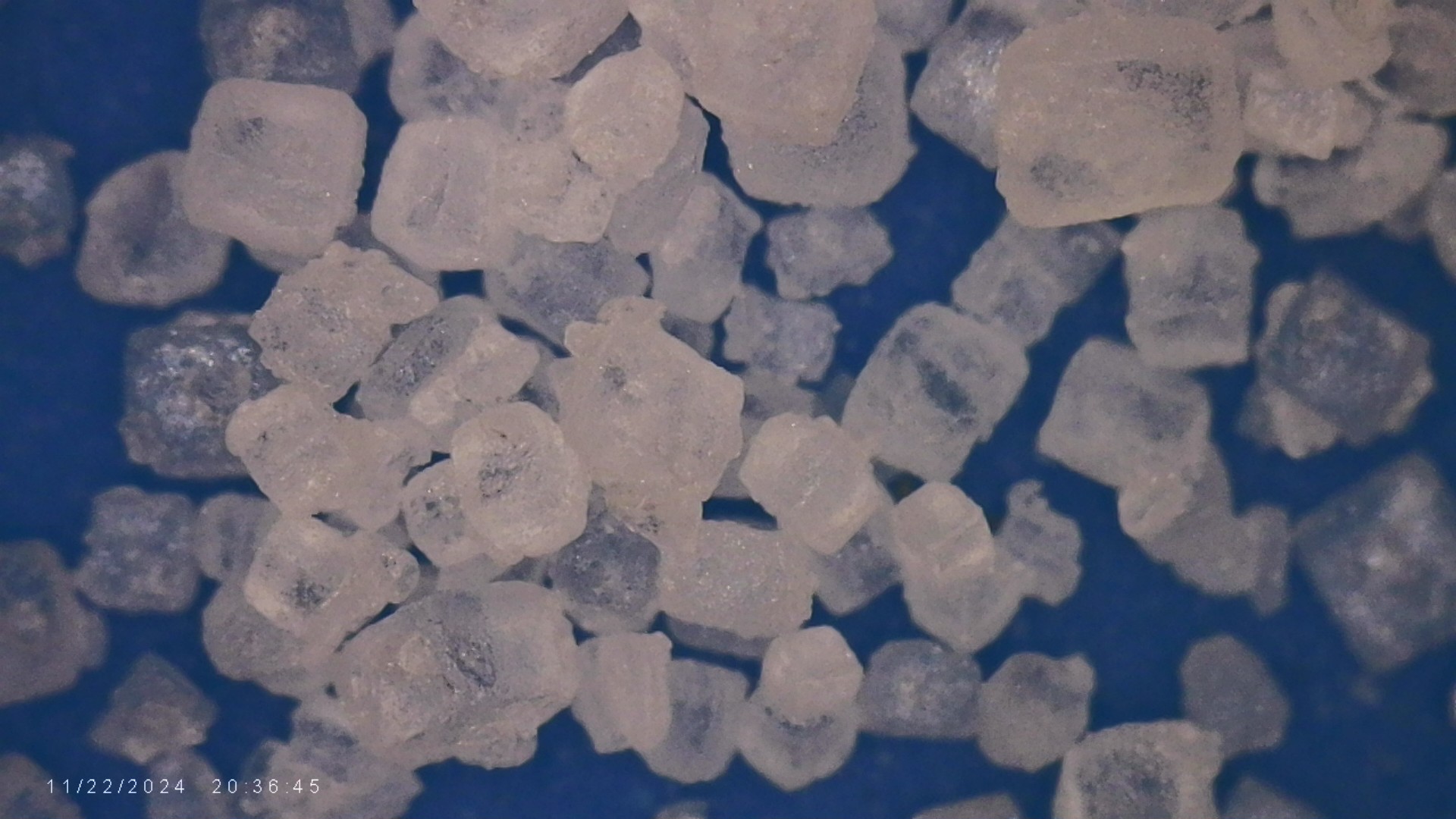 맛소금 결정이다. 맛소금은 크고 작은 정육면체로 이루어져 있다는 것을 알았다.